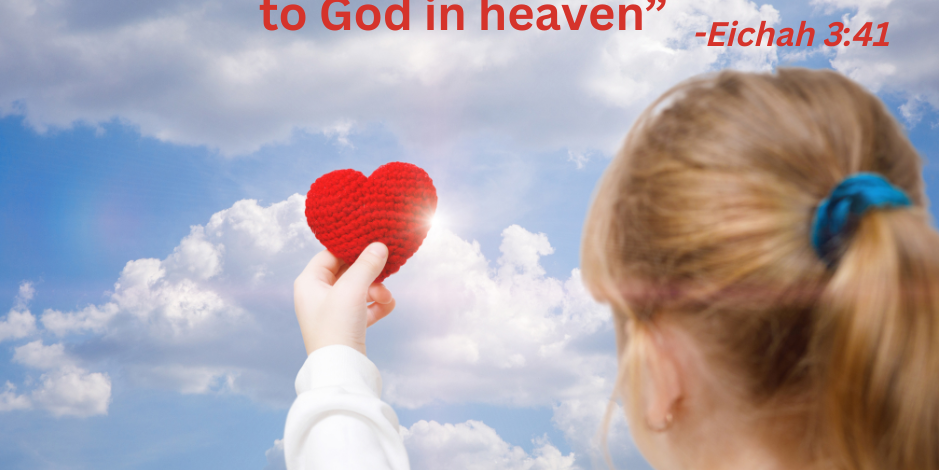 Towards the end of Eichah Chapter 3, the topic turns to repentance: “Let us search and examine our ways and turn back to the Lord. Let us lift up our hearts with (lit. to) our hands to God in heaven” (3:40-41, according to the JPS 1985 translation).